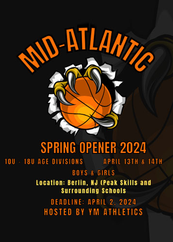 The Mid-Atlantic Spring Opener Tournament is open to Boys & Girls travel, local and regional teams. Primarily, all teams will play 3+ scheduled games, awards are given to 1st place finishing teams. All competing games will be played in modern and state of the art facilities. Event is open to all AAU basketball, club teams, NTBA, Jr. NBA, USSSA, USAB and YBOA organizations.